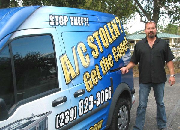 He calls his business “A/C Stolen? Get the Cage” and it’s painted across his panel truck and can’t be missed if you see it on the street or at a home where he is doing his work.