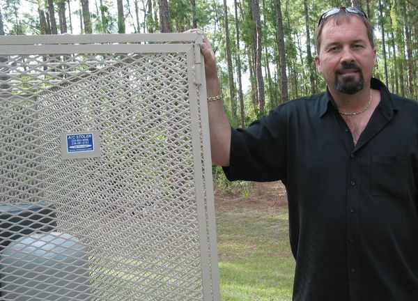 It would take an Army tank maybe to steal an air conditioning unit or your water tank outside your house. That’s what Chuck Barlow is likely to tell you when you look at the heavy gauge steel cages he builds to keep the bad guys from stealing your air conditioning equipment, especially for the value of copper and other items in the unit.