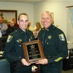 On September 24, 2009, Deputy Brian Gadowry of Port Charlotte was fueling his personal vehicle. While paying for his gas he heard someone scream “fire.” He went to investigate and found a vehicle on fire beside his truck. Standing next to the burning vehicle were a woman and her two children. Deputy Gadowry escorted all three away from the burning vehicle to safety, before returning to the burning car and pushing it away from the gas pumps. He then retrieved a fire extinguisher from the gas station and extinguished the vehicle fire. After this was over, he purchased candy bars for the children on seen.