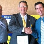 Dick Ripp joins Chamber: Dick Ripp has joined the Lehigh Acres Chamber of Commerce. He is a Republican candidate for the Lee County Commission respresenting District 2. Here he is shown shaking hands with Don Whalen, right,the CEO and president of the Chamber. At left is Lehigh’s new honorary mayor, Oscar Gamble. Photo by Mel Toadvine