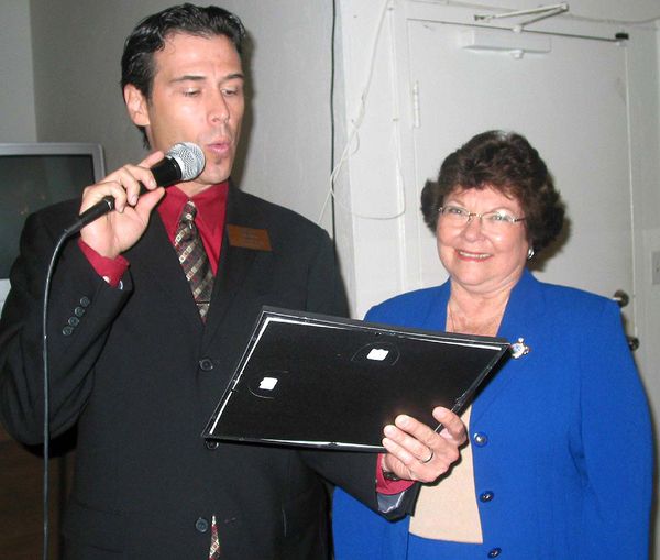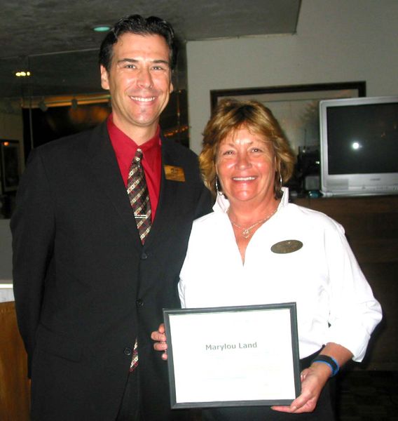Meanwhile the Chamber of Commerce presented its Employee of the Month Award to Maylou Land of the Majestic Golf Club where the luncheon was being held. She was recognized for her help with Chamber programs to raise money. Although programs were on all the tables and she was working at the luncheon, she hadn’t noticed her name and was surprised when the announcement was made.