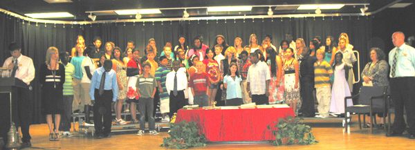 The ceremony, which lasted nearly an hour, had everything going for it except the students were not wearing caps and gowns. But the lack of caps and gowns didn’t slow the excitement of the students as several of them were given awards and they were cheered by fellow students and parents.