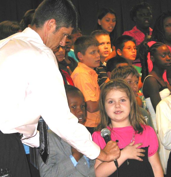 Dr. Scott LeMaster the popular school principal with both students and teachers opened the program with a welcome and closed the ceremony with advice about the children’s future and their educational goals.