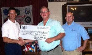 The Kiwanis Club of Lehigh gives a $1,000 check to help establish a new baseball league in Lehigh. Shown here from left to right are Tim Roach, president LABRB; Damon Shelor, president of the Kiwanis Club of Lehigh Acres; and JP Roeske, executive director of LABRB. Photo provided To The Citizen
