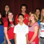 Entertained at Senior Center: This group of children from Creative Theater Workshop singers entertained July 1 at the Independence Day Picnic at the Lehigh Acres Senior Citizens Center. The children are from left to right, front row, Noelle Aparte, Tara Trenhaile, Matt Aparte, Callie Atkinson, Halie Boling. Back row from left, Assistant Director Rebecca Cardin, Sam Bostic, Director Michelle Hamstra. They provided music to celebrate the Fourth of July holiday. Photo by Joni Ferster