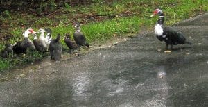 This mama duck and her ducklings were observed Friday afternoon, July July 20 looking for cover as Tropical Storm Bonnie moved in over Lehigh Acres and left rains and thunderstorms in some areas. Bonnie was the second named storm of the tropical hurricane season. Photo by Mel Toadvine