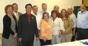 Chamber retreat: Shown here are most members of the board of directors of the Lehigh Acres Chamber of Commerce who met in retreat last week. On July 20, thy discussed upcoming Chamber matters and listened to representatives from local service organizations. Board members are show here with the last speaker, Dr. Stephen Schroering. They are from let to right, Inke Baker, the Chamber’s assistant director; Dr. Stephen Schroering, Joe Whalen, president and CEIO of the Chamber; David Deetscreek, chairman of the board, Chris Rakunas, Cindy Dodd, Celeste Buhl, Chuck Hodde, Cherly McConahy, Laurie Jerriey and Nate Stout, all board members. Photo by Mel Toadvine