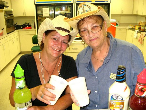 - Lehigh Acres Senior Center Country & Western Casino Day began with Peggy Halvorsen, left, and Paula Mycoff, right, cooking up and serving cowhands and cowgirls a Chili and Potato Bar with all the fixings’. Saloon drinks served up were non-alcoholic Margarita, Strawberry Daiquiri and Pina Coladas. Photo by Joanie Ferster