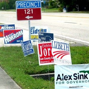 Signs like these could be seen at every precinct in Lehigh. Photo by Mel Toadvine