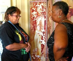 Yvonne Stanford, left, works with a customer at her dress shop at the Lehigh Acres Flea market. Photo by Mel Toadvine
