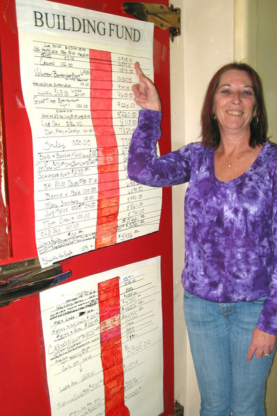 Denise Smith, also known as “Lucy” to her fellow members said the money chart hanging on the wall of the older site had reached $10,905. The drive began two and a half months ago. The names of members and the amounts they have given are listed. Smith said they range from small gifts to a thousand dollar donation.
