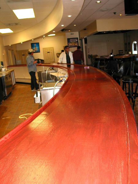 Extended bar. Members of the Fraternal Order of Eagles have extended this bar in the new building they are buying. The new circular bar is around 42 feet. Photo by Mel Toadvine