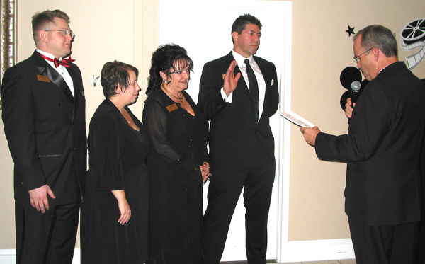 New executive board: New officers of the Lehigh Chamber Executive Board are Chris Rakunas, Cindy Dodd, Vicki Hay and Joe Pearson, the new president. At right is Capt. Ed Tamayo who swore them into office.