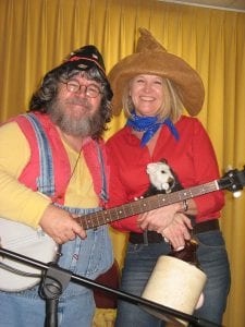 Country Fun: Lehigh Acres Senior Center Hoedown Dinner Show and Dance, which was held Friday, January 21, entertained more than 200 members featuring Fuster Buskins, on left, serenading Center Director Teresa Perkins in the recreation center on Plaza Drive. Endless River Music & Udderly Good Records on world famous Music Row in Nashville, Tenn., presented the Dollywood award winning performer and Atlanta, Ga. resident Fuster Buskins in the banjo pickin’ and sing-a-long hour show. Country fixin’s included lip smackin’ burgers in buns, potato salad, baked beans, sauerkraut loaded hot dogs, chocolate covered raspberry popsicles and beverages. Stop by the center and make your reservations for future shows, classes and informative seminars. Photo by Joni Ferster