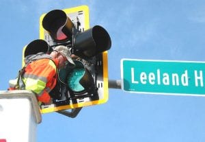 Installing frames around Lehigh stop lights