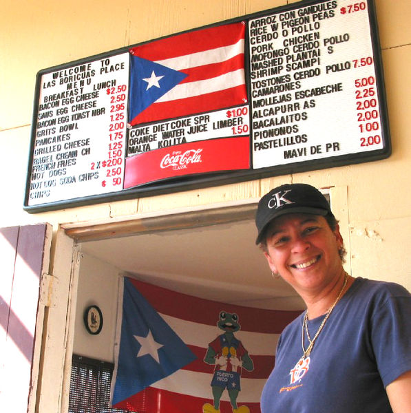 A place to eat. Cinthia Cano stands in front of a menu featured at her eatery, Las Boricua Place. Anyone who stops by gets a free cup of coffee, the best that Puerto Rican can offer, she says. Photos by Mel Toadvin