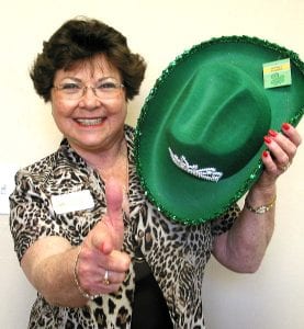 She’s ready for western hoedown: Charlotte Rae Nicely, with western hat in hand and a gun-pointing finger is ready for this weekend’s Celebrity Waiter/Waitress Dinner. Photo by Mel Toadvine