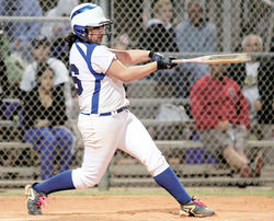 Article Photos MICHAEL PISTELLA Ida Baker first baseman Jessica Nuccio follows through on a base-hit swing in Wednesday night’s 1-0 victory over Barron Collier. More photos are available online at: cu.cape-coral-daily-breeze.com.