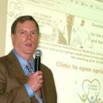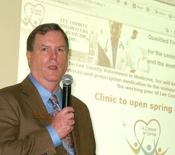 SCHROERING SPEAKS: Dr. Stephen Schroering is shown here speaking before a group in which he explains the purpose of the new Volunteers in Medicine free medical clinic in Lehigh Acres. Photo by Mel Toadvine