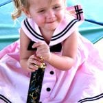 With trophy. Little Riley Neely shows off the trophy she won Sunday in the Toddlers Diaper Derby at the Lehigh Spring Festival as events continued for the third day of the nine-day festival. Several activities, games, music, Spring Idol contests and pageants were scheduled throughout the day. Photos by Mel Toadvine
