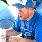 Dad watching daughter run: Brian Neely of Lehigh is shown seconds after he was cheering his two-year-old daughter, Riley, to win the Toddlers diaper Derby race at the Spring Festival Sunday.