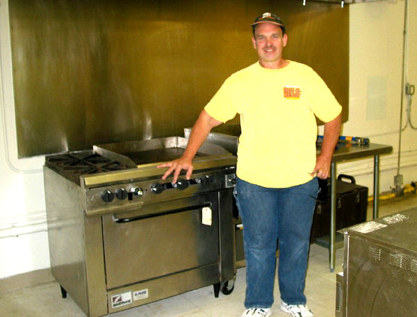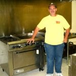 Inside Mr. BBQ: Matthew Bender, stands near the stoves in the new Mr. BBQ restaurant, and will be helping his brother, Gregg, as they open their new restaurant. It was known a few years back as Mr. and Mrs. BBQ and Gregg Bender says he still has his original barbecue recipes that everyone in town liked so much. Opening day is projected for this week. Photo by Mel Toadvine