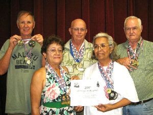 Lehigh Acres Senior Center’s National Senior Health & Fitness Day was held recently at the Center on Plaza Drive with the following champions being honored. They are from left to right, Len Donat, Leonore Del Castillo, Carl French, Millie Bonilla and Rick Cormier.