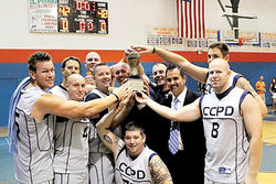 Cape Coral Police Department’s “gray” team of officers outperformed five other teams from Cape Coral, Fort Myers and Lee County to win the inaugural Police Athletic League/Law Enforcement Charity Basketball Tournament Saturday at Cape High. CCPD “gray” won two games to reach the championship game against Fort Myers PD “black,” winning the title match 48-42. Cape PD “gray” players include, kneeling in front Detective Nick Jones; from left, Officer Adam Masino, Officer Chris Abbey, Officer Nick Malone, Officer Josh Morgan, Officer Matt Hoffman, Officer Mike McIlhargey, Officer Jeff Livingston, coach/captain Mike Torregrossa, Sgt. Phil Vanlandshoot, Officer Jeremy Niland.