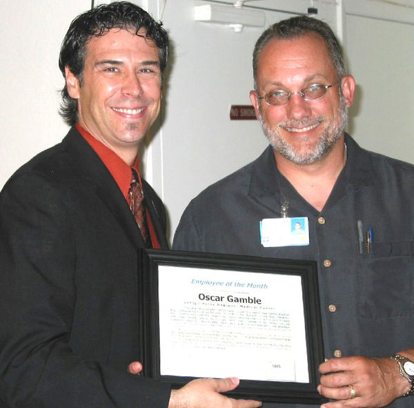 - Employee of the Month. Oscar Gamble, right, who heads the wound center at Lehigh Regional medical Center and who is Lehigh’s honorary mayor for the second time in a row, is honored as the Chamber’s Employee of the Month. Making the presentation is Joe Whalen, the Chamber CEO and president.