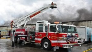 Firefighters were prevented from reaching some areas of the warehouse due to a fire wall and the collapse of a ceiling.