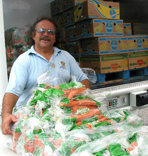 Henry Gomez, a volunteer and manager of the Kiwanis Store in Lehigh was helping to hand out hundreds of bags of carrots.