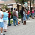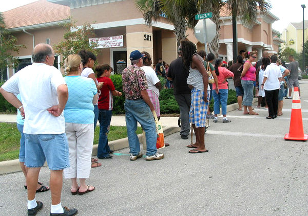 When the program began, the line was nearly triple in width and stretched all the way out to Plaza Drive.
