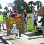 She said many of those in Fort Myers probably didn’t show up in Lehigh because of all the publicity given them in Fort Myers. Many there have occupied Centennial Park in Fort Myers for more than a week and have been given citations costing upwards of $125 for not packing up their gear at night and leaving the park. A sign forbids anyone from being in the park after sundown. However, Fort Myers police have not interfered with the demonstrators.