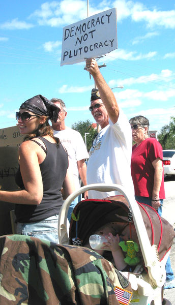 One gentleman in the Lehigh protest was waving a sign that read: Democracy Not Plutocracy.