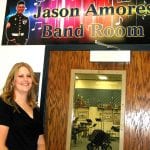 Band Room named in Amores’ honor. Marine Sgt. Jason Amores, who was killed earlier this year in the war in Afghanistan, is being remembered with the naming of the Lehigh Senior High School bank room as the Jason Amores Band room. Here, his wife, Jennifer, stands in the short hallway leading to the band room.