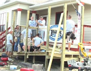 Volunteers building and installing wheelchair ramp at Lehigh home of Robert Smith