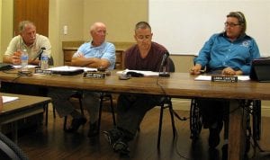 CAPTION FOR PHOTO AT RIGHT: The remaining four fire board commissioiners are from left to right, David Adams, Larry Becker, Jeff Berndt and Linda Carter. The board voted to leave the late Kevin Shea’s Seat 5 empty until the next election, RICK RAMOS
