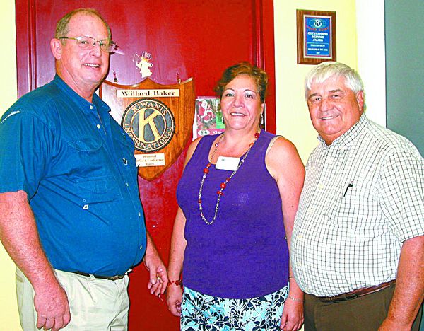 - MEL TOADVINE Olga Guzman is shown with two members of the Kiwanis Club, Damon Shelor, at left, and John Boardman at right.