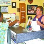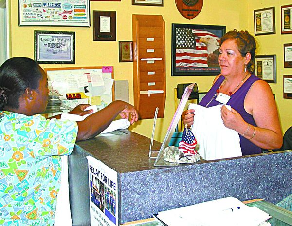 MEL TOADVINE Maria Guzman works as a cashier at the thrift store. Here she helps a customer at the counter.