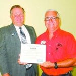 MEL TOADVINE Gary Bright, left, CEO and president of the Greater Lehigh Acres Chamber of Commerce, presents the Member of the Month award to James Fait of Vision Ace Hardware.