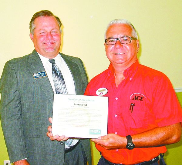 - MEL TOADVINE Gary Bright, left, CEO and president of the Greater Lehigh Acres Chamber of Commerce, presents the Member of the Month award to James Fait of Vision Ace Hardware.