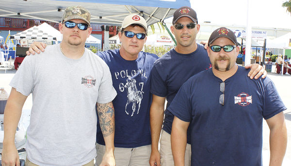 CHUCK BALLARO From left, Jason Jones, Jimmy Burrell, Mike Mann and Dave Washburn of the Fort Myers Shores Fire Department during the fifth annual Public Safety BBQ cook-off at the Shell Factory on Sunday.