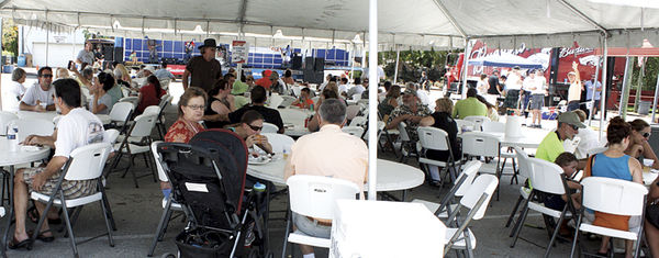 CHUCK BALLARO Visitors enjoy the food at the event, which was free to the public and served as a fund-raiser for “Stay Alive, Just Drive.”
