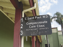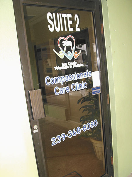 - MEL TOADVINE The entrance to Compassionate Care Clinic lists the phone number those without insurance and in need of medical treatment may call. Volunteers also staff the office most days.