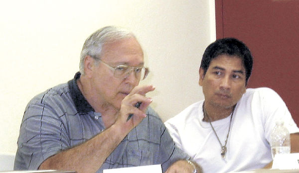 MEL TOADVINE Rick Anglickis at last week’s Community Council meeting during a discussion of merging the council with the Lehigh Acres Planning Panel. Next to Anglickis is Ron Gogoi, a representative of the MPO and Lee DOT.