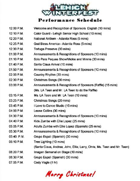 “Talk about fun, we are going to have live entertainment and snow flurries, carriage rides, music, food and prizes are planned throughout the event with Santa making a surprise visit, sometime after 1:30 p.m., but he’ll be there,” laughed Mojica. He also said that during Winterfest, families will enjoy appearances from popular children characters. Families will also be able to take pictures with Santa Claus and kids will be able to enjoy all the fun activities in the “North Pole Area” of Veterans Park, where there will be “snow,” something the majority of children of Lehigh have only seen in pictures.