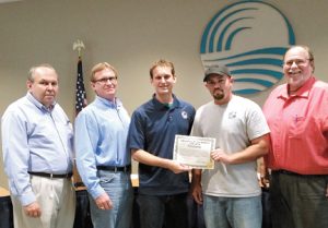 PHOTO SPECIAL TO THE CITIZEN Tim Cooley, the East County Water Control District’s lead heavy equipment operator, was awarded Employee of the Month. Left to right are Commissioners Ken Thompson and Dave Deetscreek, Commission Chairman Mike Bonacolta, Cooley and Commissioner Nate Stout.