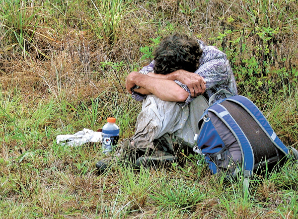He was Joseph Skillman, 39, who sat in the shade along Beth Stacey Boulevard with his head buried in his arms while bags and bags of trash were removed from his camp site.