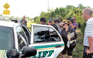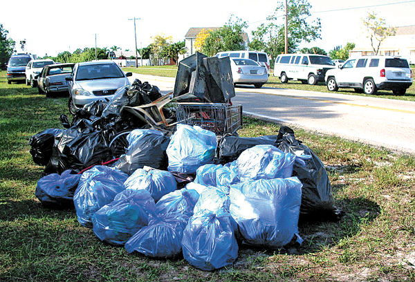 A large pile of bags of debris were removed from the site and piled along the side of Beth Stacey Boulevard. TV cameras and press from Fort Myers converged on the scene with local media.