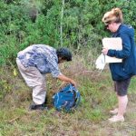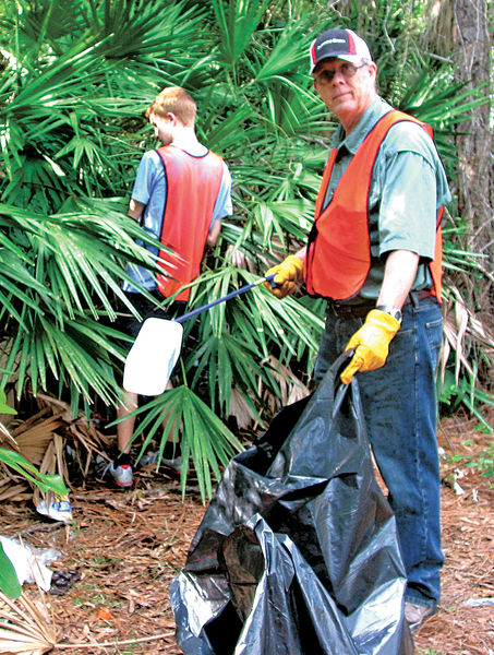 - MEL TOADVINE Volunteers worked to clean up trash at a homeless camp site in the woods off of Beth Stacey Blvd.